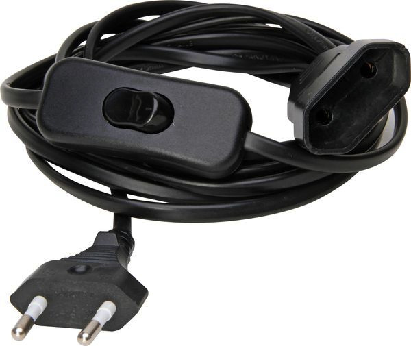 Verlängerungskabel mit Euro-Stecker und Euro-Kupplung, inkl. Schalter, 3m Kabellänge, Farbe: schwarz