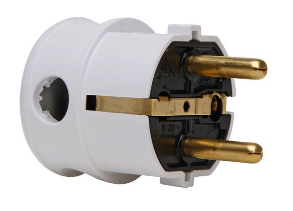 | Kurzbeschreibung | Kunststoff-Schutzkontakt-Winkelstecker, 2 Schutzkontaktsysteme, für Kabel bis 3x1,5mm², Farbe: weiß |