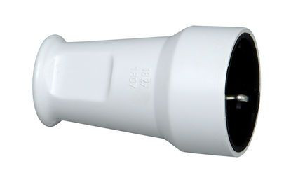 PVC-Schutzkontakt-Kupplung, mit Knickschutz, bruchfest, Einsatz: Polyamid, Kappe: PVC, für Kabelquerschnitt bis 3x1,5mm², 16A, 250V~, Schutzart IP20, Farbe: arktisweiß