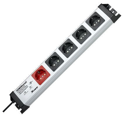 | Kurzbeschreibung | POWERversal 5-fach Master-Slave-Steckdosenleiste mit Geräteschutz-Überspannungsfilter, Farbe: silber-schwarz |