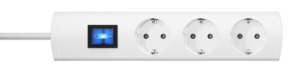 UNOversal Plus, 3-fach, mit 2-poligem beleuchteten Schalter, mit erhöhtem Berührungsschutz, mit 90° gedrehten Töpfen, Topfabstand 52mm, Zuleitung H05VV-F3G1,5mm², 5m, anschraubbar, 16A, 250V~, Farbe: weiß