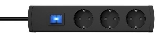 UNOversal Plus, 3-fach, mit 2-poligem beleuchteten Schalter, mit erhöhtem Berührungsschutz, mit 90° gedrehten Töpfen, Topfabstand 52mm, Zuleitung H05VV-F3G1,5mm², 5m, anschraubbar, 16A, 250V~, Farbe: anthrazit
