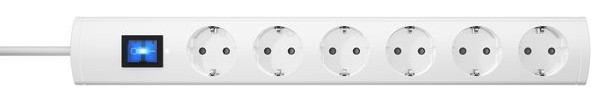 UNOversal Plus, 6-fach, mit 2-poligem beleuchteten Schalter, mit erhöhtem Berührungsschutz, mit 90° gedrehten Töpfen, Topfabstand 52mm, Zuleitung H05VV-F3G1,5mm², 1,4m, anschraubbar, 16A, 250V~, Farbe: weiß