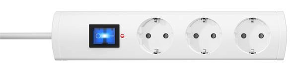 UNOversal Plus, 3-fach, mit Geräteschutz-Überspannungsfilter, optische Ausfallanzeige nach Überspannungsschaden, mit 2-poligem beleuchteten Schalter, mit erhöhtem Berührungsschutz, mit 90° gedrehten Töpfen, Topfabstand 52mm, Zuleitung H05VV-F3G1,5mm², 1,4m, anschraubbar, 16A, 250V~, Farbe: weiß