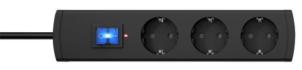 UNOversal Plus, 3-fach, mit Geräteschutz-Überspannungsfilter, optische Ausfallanzeige nach Überspannungsschaden, mit 2-poligem beleuchteten Schalter, mit erhöhtem Berührungsschutz, mit 90° gedrehten Töpfen, Topfabstand 52mm, Zuleitung H05VV-F3G1,5mm², 1,4m, anschraubbar, 16A, 250V~, Farbe: anthrazit