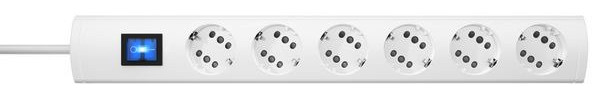 DUOversal Plus, 6=12, je Steckdosentopf Anschlussmöglichkeit für einen Schutzkontakt- oder zwei Eurostecker, mit 2-poligem beleuchteten Schalter, mit erhöhtem Berührungsschutz, mit 35° gedrehten Töpfen, Topfabstand 52mm, Zuleitung H05VV-F3G1,5mm², 5m, anschraubbar, 16A, 250V~, Farbe: weiß