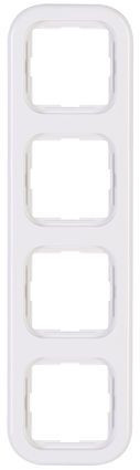 4-facher Abdeckrahmen in der Farbe arktisweiß. Geeignet für senkrechte, sowie waagrechte Installationaller Komponenten des Programms DONAU, Schutzart IP20