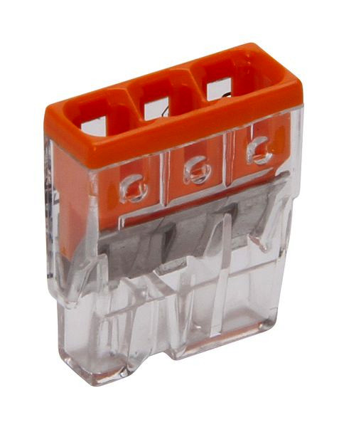WAGO COMPACT-Verbindungsdosenklemme, für eindrähtige Leiter, max. 2,5 mm², 3 Leiter; Gehäusefarbe: transparent, Deckelfarbe: orange, Dauergebrauchstemperatur: 105°C, Inhalt: 10 Stück