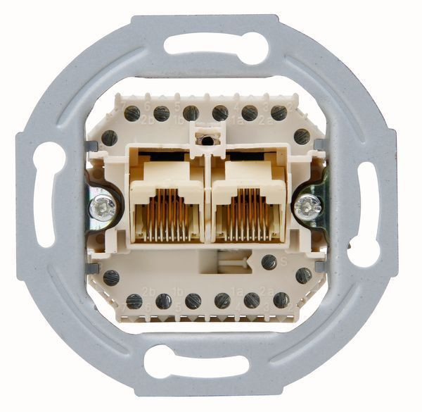 UAE-Anschlussdose, Universal-Anschluss-Einheit für Telefon-und Datentechnik, ISDN-fähig, RJ11/12, RJ45, mit Schrägauslass, Schraubkontakte, Unterputz, 8 Pole belegbar, 2 getrennt