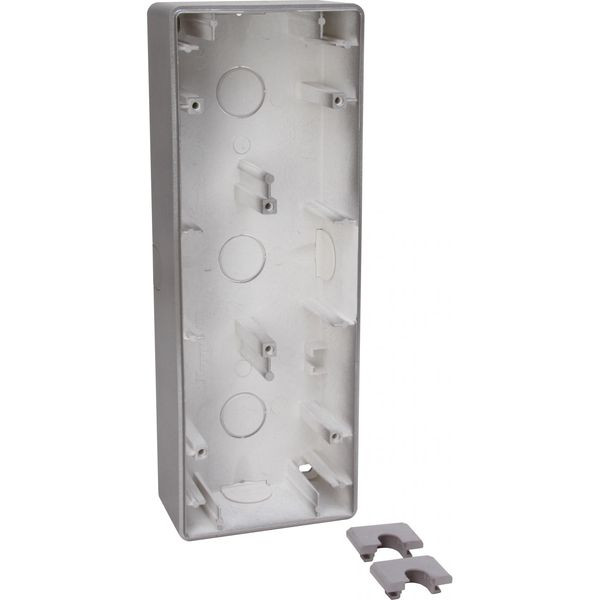 HK02 - Aufputzgehäuse, 3-fach, zur Aufputzmontage von Komponenten des Schalterprogramms HK02, mit Befestigungsschrauben 3x28, Farbe: stahl