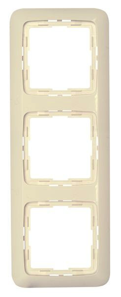3-facher Abdeckrahmen in der Farbe cremeweiß. Geeignet für senkrechte, sowie waagrechte Installationaller Komponenten des Programms RIVO, Schutzart I P20