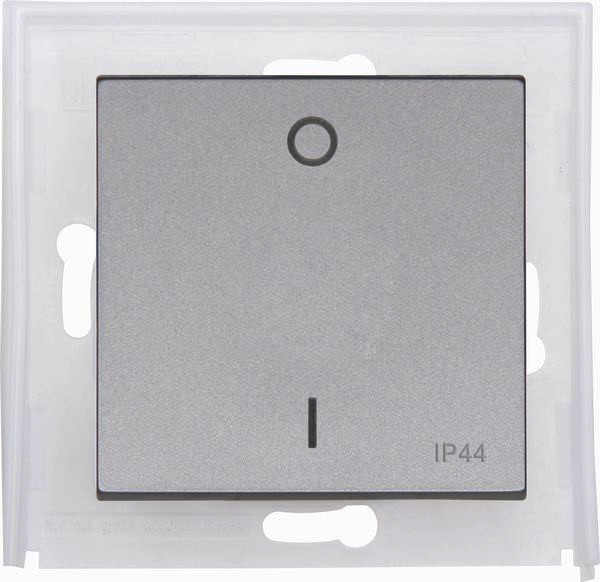 HK07 IP44 - Flächenwippe 1-fach, 2 polig, ohne Linse, Beschriftung 0 und I, Farbe: stahl