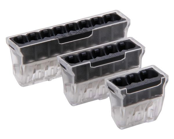 Steckklemmen-Set, 3-polig: 10 Stück, 5-polig: 10 Stück, 8-polig: 5 Stück, für 0,5-2,5mm² eindrähtige Leiter, 1,5-2,5mm² starre mehrdrähtige Leiter, Farbe: dunkelgrau/transparent