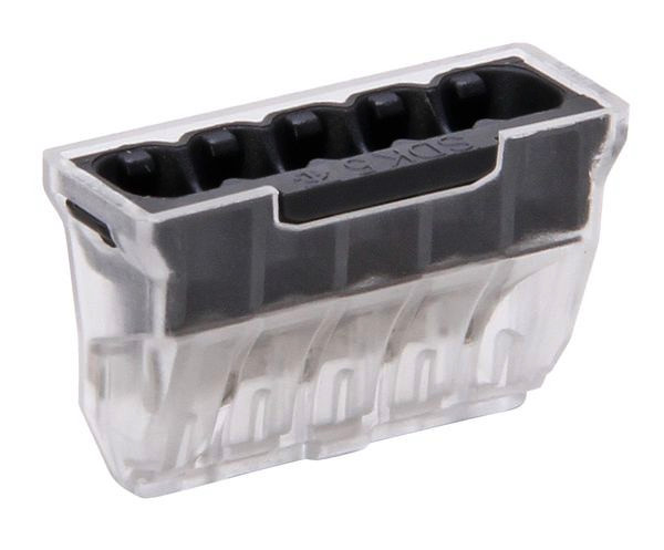 Steckklemme, 5-polig, für 0,5-2,5mm² eindrähtige Leiter, 1,5-2,5mm² starre mehrdrähtige Leiter, Farbe: dunkelgrau/transparent