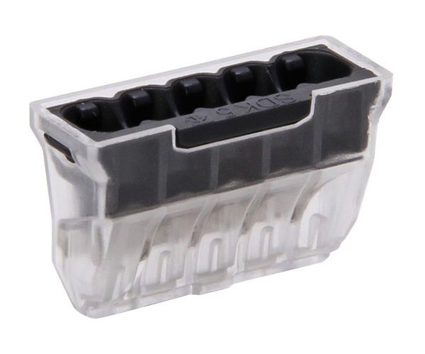 Steckklemme, 5-polig, für 0,5-2,5mm² eindrähtige Leiter, 1,5-2,5mm² starre mehrdrähtige Leiter, Farbe: dunkelgrau/transparent
