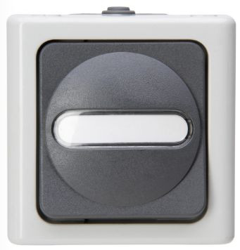 BLUE ELECTRIC - Aufputz-Feuchtraum Taster (Wechsler), Bemessungsspannung 250V~, Schaltvermögen 10AX, Schutzart IP44, Farbe: grau