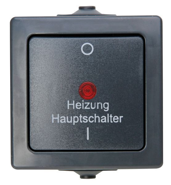 Aufputz-Feuchtraum Heizungshauptschalter, beleuchtet, Design NAUTIC, Farbe anthrazit, 2-polig mit Linse und eingesetzter Glimmlampe, Bemessungsspannung 250V~, Schaltvermögen 10AX, Schutzart IP44.
