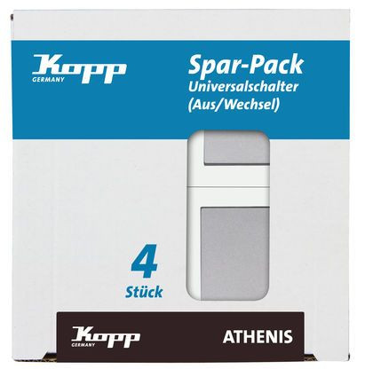 | Kurzbeschreibung | ATHENIS - Profi-Pack: 4 Universalschalter (Aus-/Wechsel), Farbe: stahl |