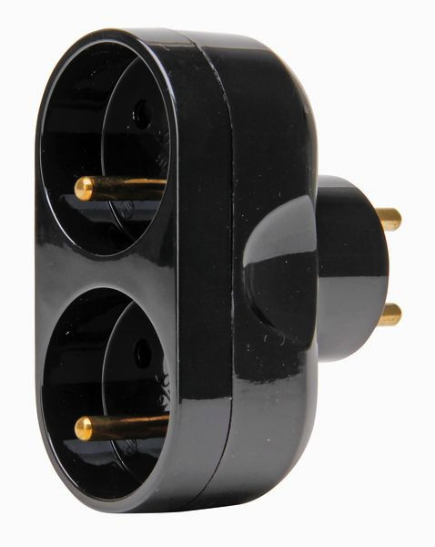 2-fach Mittenschutzkontakt Adapter (nur für den Exportbdarf), oval, mit erhöhtem Berührungsschutz, 2x16A, 230V~/50Hz, Schutzart IP20, Farbe: schwarz
