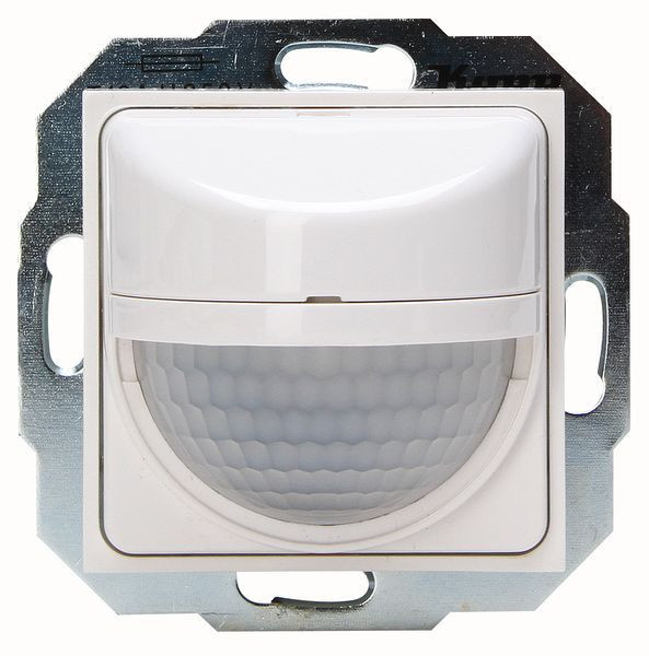HK07 - INFRAcontrol Bewegungsmelder R180° 50x50mm, 3-Draht-Gerät, Erfassung: Infrarot, Erfassungswinkel 180°, Montage: Unterputz, Erfassungsreichweite bis 9m, Schutzart: IP40, 230VAC, 50Hz, Glühlampen: max. 2000W, Hochvolt-Halogenlampen: max. 1200W, Leuchtstofflampen: max. 900VA (reihenkompensiert), Niedervolt-Halogenlampen: max. 1000VA, Energiesparlampen: max. 600VA, LED-Lampen: max. 500W/VA, Nachlaufzeit: 20s-30min, mit Abschaltvorwarnung, Impulsausgang, Ansprechhelligkeit einstellbar 5/30/100 Lux, Lernbereich/Speicherfunktion: 5-1000 Lux, mit Umschalter für Dauer-AUS, Automatik, Dauer-EIN, passend für Schalterprogramm HK07 inkl. Zwischenrahmen, Farbe: reinweiß