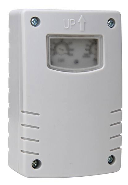 Dämmerungsschalter mit Zeitschaltuhr zur Aufputz-Montage. Eingebauter Timer mit 1-9 Stunden oder Abenddämmerung bis Morgengrauen, Bemessungsspannung 230-240V~, Nennstrom 10A, Frequenz 50-60Hz, Einstellhelligkeit 3-500lx, Temperaturbereich min. -20°C max. +40°C, Luftfeuchtigkeit max. 93%, Schutzart IP44, Farbe: weiß