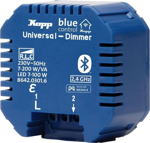 Blue-control Universal Dimmaktor, 1-Kanal, 2-Draht, mit Bluetooth Mesh-Technologie, 230V~, 50Hz, 7 bis max. 200W/VA, LED 7-100 W, 2,4GHz, Schutzart IP20