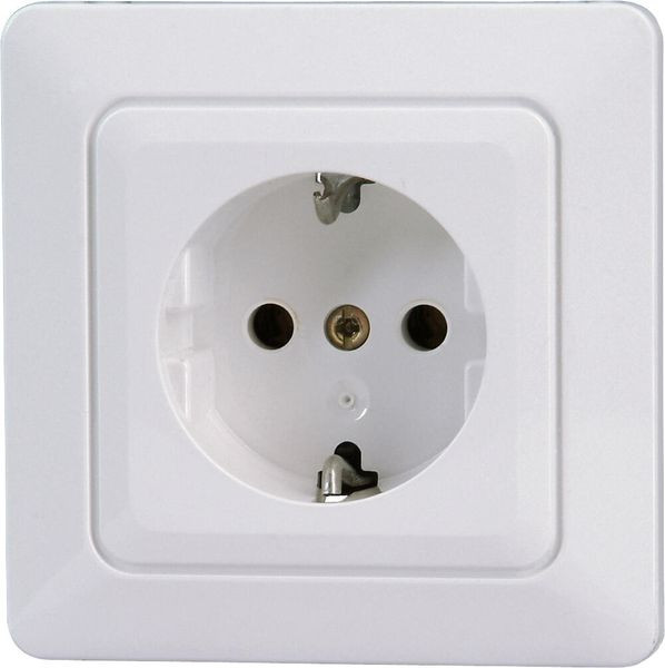 HK02 - Schutzkontakt-Steckdose , 1-fach, erhöhter Berührungsschutz, Komplettgerät für 1-fach Schalterdosen Ø 60 mm, Nennstrom 1 6A, Bemessungsspannung 250V~, Schutzart IP20, Farbe: arktisweiß