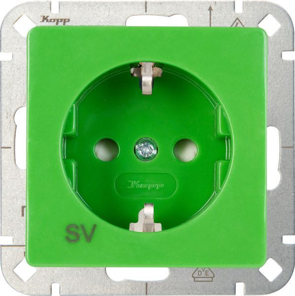 HK05 - Schutzkontakt-Steckdose, erhöhter Berührungsschutz, Kennzeichnung "SV" (für Sicherheitsversorgung), Nennstrom 16A, Bemessungsspannung 250V~, Schutzart IP20, Farbe: grün