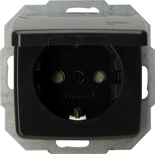 | Kurzbeschreibung | Schutzkontakt-Steckdose mit Klappdeckel und erhöhtem Berührungsschutz, RIVO, Farbe: anthrazit |