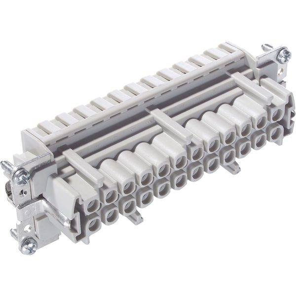 Einsatz mit Käfigzugfederanschluss Einsatz mit Käfigzugfederanschluss Buchse; Anzahl der Kontakte: 24+PE; Baugröße: 24B; 500 V AC rms / DC nach IEC; 16 A nach UL/CSA; Für Querschnitt (min./max.): 0.5mm² - 2.5mm²; Kontakte inklusive; Polycarbonat
