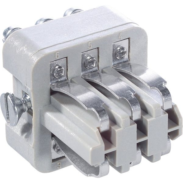 Einsatz mit Lötanschluss Einsatz mit Lötanschluss Buchse; Anzahl der Kontakte: 6; Baugröße: 3A; 24 V AC rms nach IEC; 10 A nach UL/CSA; Für Querschnitt (min./max.): 0.5mm² - 1.5mm²; Kontakte inklusive; Polycarbonat
