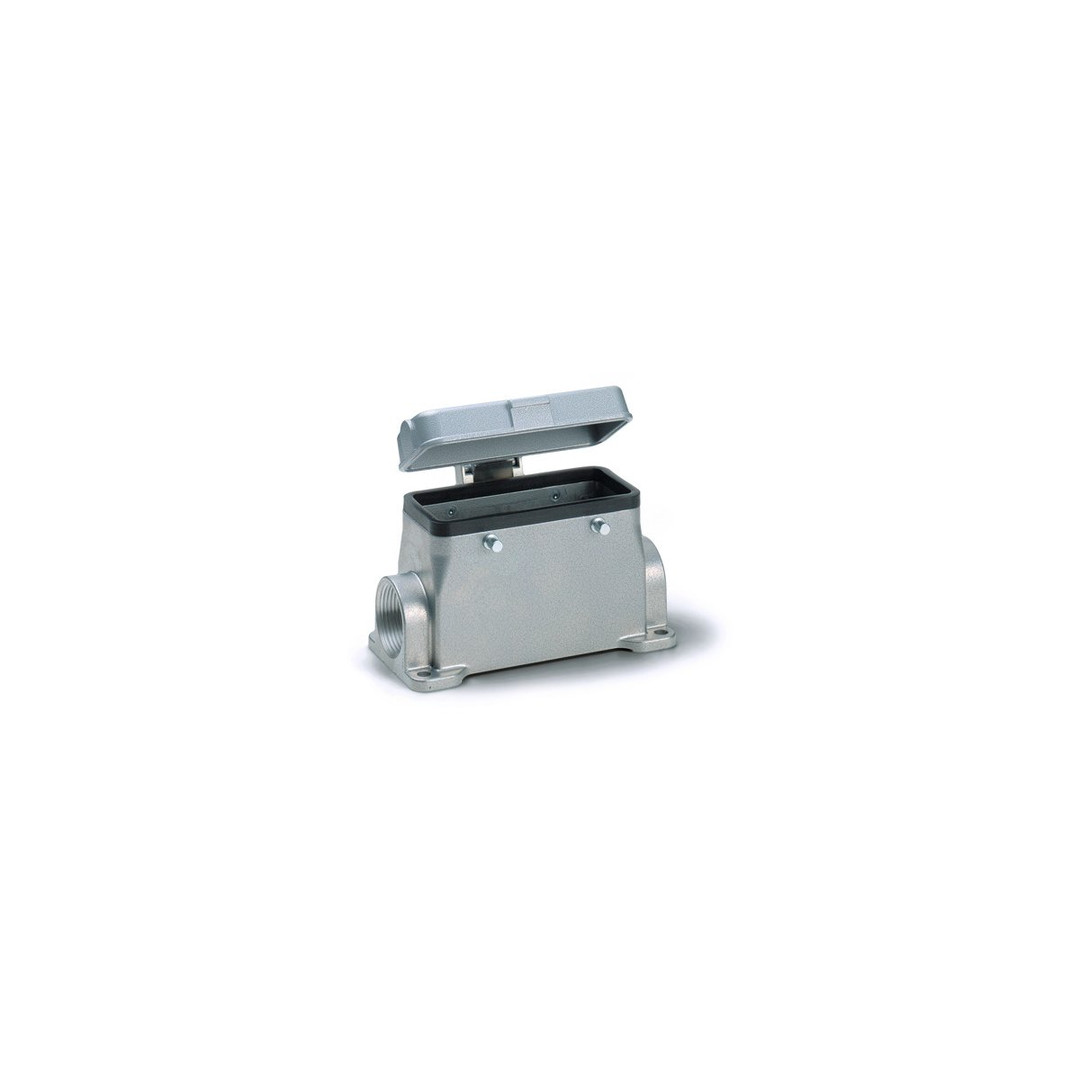 Sockelgehäuse H-B 16 SDRL-BO 21 ZW. BOX MOUNT BASE; Sockelgehäuse; Baugröße: 16B; Steckverbinder Bauform: Standard; Querbügel; Anzahl der Leitungseinführungen: 2; Aluminium, pulverbeschichtet; IP-Schutzart gesteckt: IP 65; Anwendungsgebiete: Veranstaltungstechnik;Anlagenbau;Kunststoffindustrie; Nutzen: Der Standard bei den Gehäusen Große Auswahl an unterschiedlichen Einsätzen