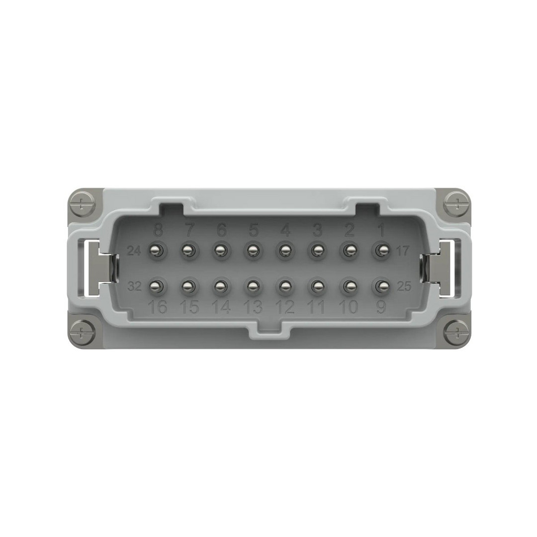 Einsatz mit Schraubanschluss EPIC® H-BE 16 SS DR; Einsatz mit Schraubanschluss Stift; Anzahl der Kontakte: 16+PE; Baugröße: 16B; 500 V AC rms / DC nach IEC; 16 A nach UL/CSA; Für Querschnitt (min./max.): 0.5mm² - 2.5mm²; Kontakte inklusive; Polycarbonat; Anwendungsgebiete: Zur Übertragung von Steuersignalen zu Aktoren und Stellantrieben ;Für die schaltschrankinterne Verdrahtung geeignet;Typische Verwendungsbereiche sind Bühnen-, Licht- und Hebetechnik ;Zum Energieversorgungsanschluss von Geräten und Maschinen in diversen Anwendungen; Nutzen: Einsätze der Serie EPIC® H-BE gelten als Klassiker in der Industrie und sind ideal einsetzbar bei höheren Spannungen und Stromstärken;Große Vielfalt von passenden Gehäusevariationen ;UL-Zertifizierung gemäß Technischen Daten ermöglicht Verwendung des Produkts im nordamerikanischen Raum;VDE-geprüfte Qualität;Aus robustem Polycarbonat (Brennbarkeitsklasse V-0 nach UL94-Prüfverfahren für die Brennbarkeit von Kunststoffen);Artikel mit oder ohne Drahtschutz erhältlich Der Drahtschutz ermöglicht den direkten Anschluss von Litzen ohne Aderendhülsen;Bei der Serie EPIC® H-BE können Einsätze verschiedener Anschlussarten, innerhalb der gleichen Baugröße, beliebig miteinander kombiniert werden (Schraub, Crimp, Käfigzugfeder oder Push-In) ;Servicefreundlicher Schraubanschluss erlaubt die Konfektionierung ohne spezielles Werkzeug;Auch nach UL 508 A/ UL 2237 für Anwendungen im Schaltschrank zertifiziert;Normenkonform einsetzbar in Schienenfahrzeugen (Prüfung des Brandverhaltens nach DIN EN 45545-2:2016-02, Anforderungssätze R22 und R23, Gefährdungsstufen HL1, HL2 und HL3)