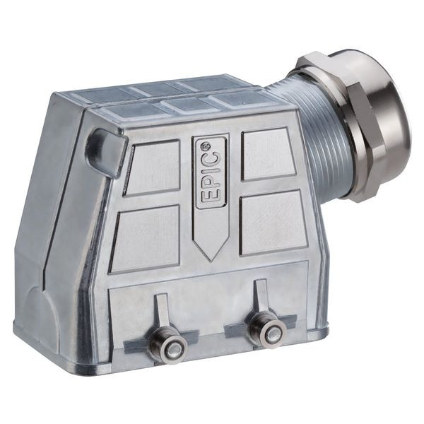 Tüllengehäuse Tüllengehäuse; Baugröße: 10B; Steckverbinder Bauform: Standard; Querbügel; Anzahl der Leitungseinführungen: 1; Zinklegierung, vernickelt; EMV Abschirmung; IP-Schutzart gesteckt: IP 68 - 1m (10h)