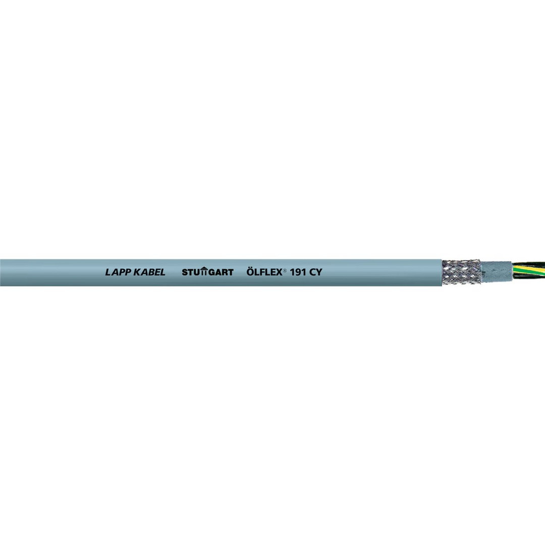 Steuerleitung ÖLFLEX® 191 CY 4G95; Steuerleitung; 4G95; U0/U: 300/500 V; PVC; Aderidentifizierung: Nummern; Geschirmt; UL listed; flexibel; Anwendungsgebiete: Für mittlere mechanische Beanspruchung geeignet;Einsetzbar in trockenen, feuchten und speziell in öligen Umgebungen;Zur festen Verlegung und gelegentlichen Bewegung ohne Zugbeanspruchung;PVC-Außenmantel ist beständig gegenüber Säuren und Laugen;Universell einsetzbar zur Verdrahtung von maschineninternen und anlagenübergreifenden Steuerkreisen; Nutzen: In Leiterquerschnitten bis 120 mm² erhältlich;Idealer Schutz vor elektromagnetischer Störung durch Kupferabschirmgeflecht mit hohem Bedeckungsgrad;Erhöht ölbeständig nach DIN EN 50363-4-1 (TM5);Hohe elektrische Sicherheit durch 4000 V-Prüfspannung;Platzsparend durch reduzierte Wanddicken;Leitung mit Mehrfach-Zertifizierung ermöglicht universellen Einsatz, reduziert Teilevielfalt und sorgt so für Einsparungen in der Logistik;UL-/CSA-Zertifizierung gemäß Technischen Daten ermöglicht Verwendung des Produkts im nordamerikanischen Raum;Zusätzliche Robustheit durch extrudierten Innenmantel