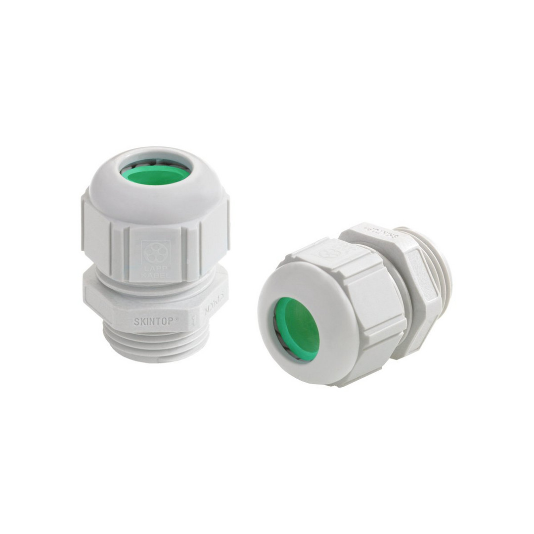 Kabelverschraubung SKINTOP® ST-HF-M 20X1.5 RAL 7035 LGY; Kabelverschraubung; M 20; Klemmbereich (min./max.): 7 - 13 mm; Schlüsselweite 1: 25; lichtgrau; Halogenfrei; IP 68 - 5 bar (30 min); ; Anwendungsgebiete: Einsetzbar in trockenen und feuchten Umgebungen;Zur abdichtenden und zugentlastenden Leitungseinführung in ein Gehäuse;Ausführungen in schwarz sind für den Außenbereich geeignet;Für Anwendungen mit UV-C-Strahlung geeignet (nach LAPP-interner Prüfmethode); Nutzen: Höchst flammwidrige und selbstverlöschende Materialien (Brennbarkeitsklasse V-0 nach UL94-Prüfverfahren für die Brennbarkeit von Kunststoffen);VDE-geprüfte Qualität;Halogenfreie Materialien begünstigen die Verwendung des Produkts in öffentlichen Bereichen;Dauerhafter Vibrationsschutz verhindert, dass sich die Hutmutter bei Vibrationen öffnet;Halogenfreies Produkt, das im Brandfall keine gesundheitlich bedenklichen Gase entwickelt;Normenkonform einsetzbar in Schienenfahrzeugen (Prüfung des Brandverhaltens nach DIN EN 45545-2:2016-02, Anforderungssätze R22 und R23, Gefährdungsstufen HL1, HL2 und HL3) ;Bestmögliche Abdichtung ermöglicht Schutzart IP 68 (5 bar)