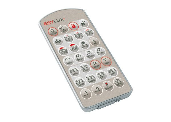 | Kurzbeschreibung | ESYLUX-Sensor-Modul FLEXOsmart IR-Fernbedienung - für DALI Präsenz- und Bewegungsmelder - Integrierter Programmiermodus - 100x50x9mm |