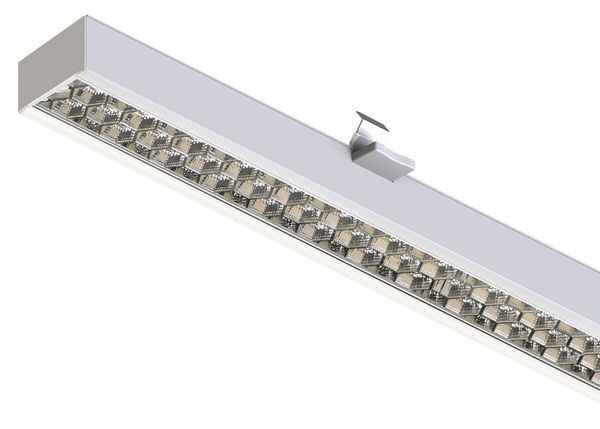 LED Universalmodul FLEXO vision - Universelle Lichtband-Sanierung mit Lichtfarbauswahl bei minimaler Blendung - Der spezielle Multikammer-Reflektor des LED Universalmoduls FLEXO vision von LAS sorgt für noch weniger Blendung (UGR < 19) und erfüllt die Normen der Arbeitsplatzbeleuchtung. Besonders bei niedrigen Hallenhöhen gewährleistet das höchsten Lichtkomfort. Das clevere Click-Slide-System ist maximal kompatibel, enorm zeitsparend und ermöglicht eine einfache Umrüstung der meisten gängigen Tragschienensysteme bei komplett integrierter, unabhängiger Durchgangsverdrahtung. Die gewünschte Farbtemperatur (z. B. warmweiß 3000 K) lässt sich einfach per Schieberegler auswählen. Die konstante Lichtausgabe (CLO) sorgt ökonomisch über die gesamte Lebensdauer für ein gleichbleibend hohes Lichtniveau. Über einen DIP-Schalter am EL-zertifizierten Treiber lässt sich die gewünschte Leistung 7-stufig wählen. Ein schneller Phasenwechsel erfolgt werkzeuglos per Schieberegler. Eine Dimmung mit DALI 2-Standard ist ebenso lieferbar.