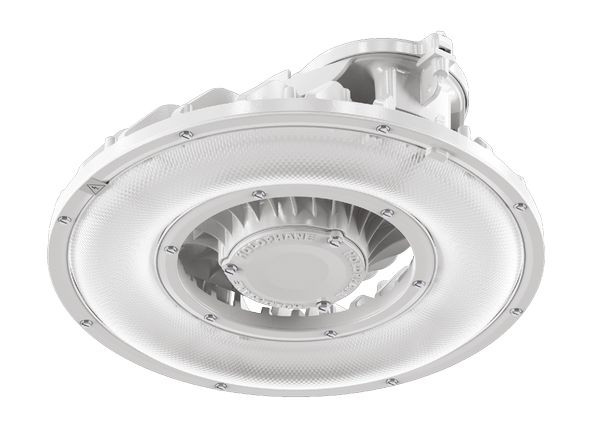 des thermisch getrennten Treibergehäuses ermöglicht eine einfache Installation und Wartung. Erhältlich in zwei ultraschlanken, kompakten Größen deckt die Leuchte Lumenpakete bis 71000 lm mit bis zu 171 lm/W ab und hält Umgebungstemperaturen von bis zu 70° C stand.