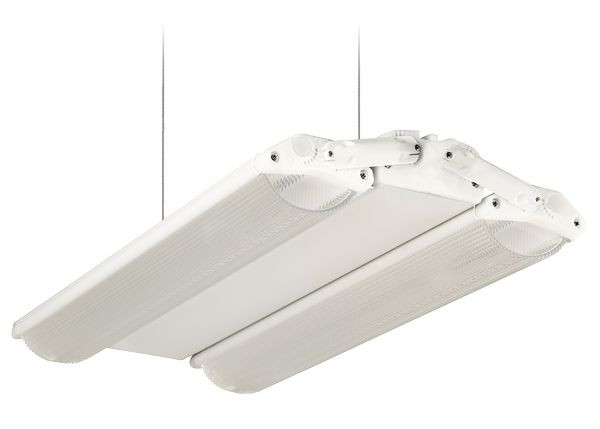 LED Hallenleuchte PRISMASPACE – Flexibles Ausleuchten am Lichtband durch verstellbare Lichtmodule - Die LED Hallenleuchte PRISMASPACE ist insbesondere für Lichtbandbzw. Kabelkanal-Systeme konzipiert, um z.B. bestehende T5- oder T8-Röhren durch dynamische und flexible Ausleuchtung zu ersetzen. Die hocheffizienten LED-Chips sind hinter den Prismenlinsen aus Acryl angeordnet. Diese Doppelmodule sind von 0° bis > 90° in 15°-Schritten verstellbar. Das Gehäuse aus Aluminium, die hochwertigen Materialien der einzelnen Komponenten und der entkoppelte Treiber auf einer mit Aluminium unterlegten Leiterplatte montierten LEDs sorgen für eine optimale thermische Ableitung und maximale Langlebigkeit. Das Beleuchtungssystem kann problemlos mittels Universalhalterung durch eine Einzelperson an alle Lichtband-Systeme installiert werden