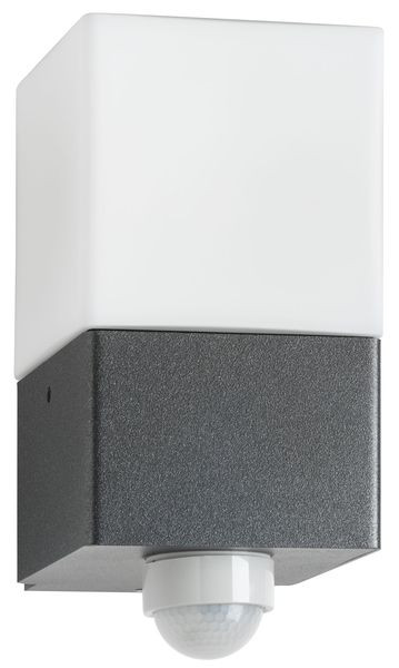 Leuchte aus pulverbeschichtetem Edelstahl, Diffusor aus Opalglas mit Gewinde. Mit Bewegungsmelder. Farbe Graphit (DB703), Material Edelstahl, Opalglas, Lichtquelle: 1 x E27, 100 Watt, 220-240 V, 50-60 Hz, Schutzklasse I, Maß: 250x120x145