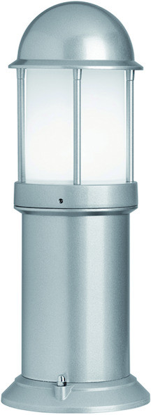 Pulverbeschichtete Pollerleuchte aus Aluminium-Druckguss, silber, Diffusor aus Opalglas, Höhe 450mm, IP44, 1xE27, max. 75W