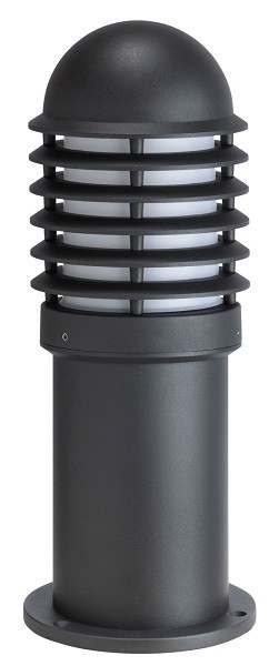 Pulverbeschichtete Standleuchte aus Aluminium-Druckguss, Diffusor aus Polycarbonat Opal, kurze Bauhöhe, rund, graphitfarben, HxD 450 x 160 mm, 1x E27 max. 100 Watt, IP44, 220-240 V 50/60 Hz