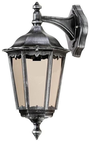 Ambiente Wandleuchte hängend, pulverbeschichtete Leuchte aus Aluminium-Druckguss, Diffusor aus Glas, HxBxT 450 x 220 x 280 mm, 1x E27 max. 100 Watt, ohne Leuchtmittel, IP43, Farbe Schwarz-Silber, 220-240 V 50/60 Hz