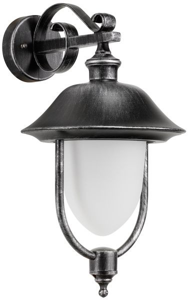 Pulverbeschichtete Leuchte aus Aluminium-Druckguss, Diffusor aus Opalglas. Farbe Schwarz-Silber, Material Aluminium-Druckguss, Opalglas, Lichtquelle: 1 x E27, 100 Watt, 220-240 V, 50-60 Hz, IP43, Schutzklasse I, Maß: 460x250x320