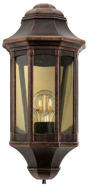 Pulverbeschichtete Leuchte aus Aluminium-Druckguss, Diffusor aus Polycarbonat. Farbe Schwarz-Kupfer, Material Aluminium-Druckguss, Polycarbonat, Lichtquelle: 1 x E27, 100 Watt, 220-240 V, 50-60 Hz, IP44, Schutzklasse I, Maß: 410x200x140