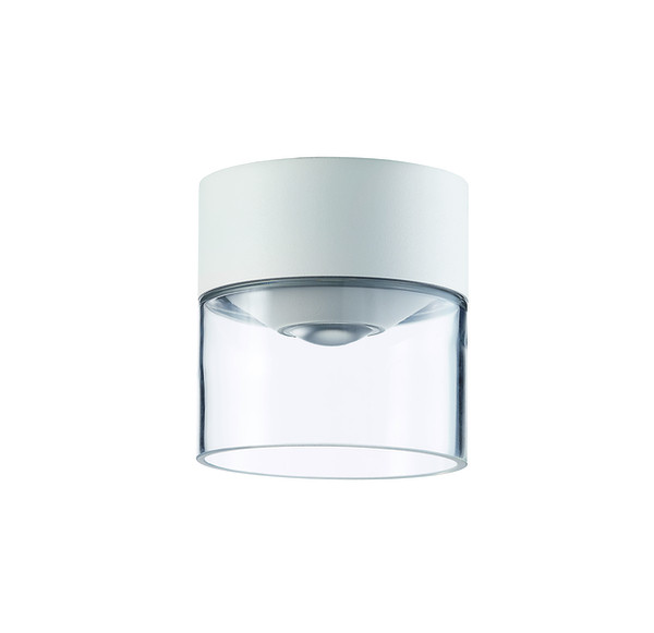 Pulverbeschichtete Deckenleuchte aus Aluminium-Druckguss mit Glas, mit Diffusorlinse, weiß, 1x LED 6 W, nicht austauschbar, ca. 3000 K, 460 lm, Schaltzyklen 150.000+, Abstrahlwinkel 35°, IP65, Höhe 113 mm, Ø 108 mm