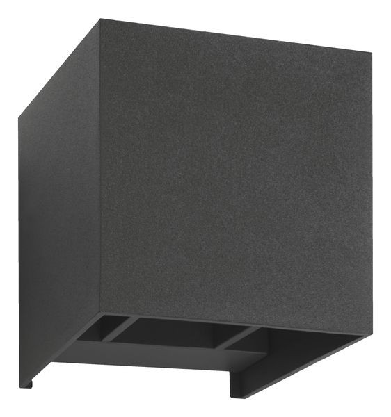 Pulverbeschichtete Leuchte aus Aluminium-Druckguss, Diffusor aus Floatglas. Inklusive LED-Leuchtmittel. Farbe Graphit, Material Aluminium-Druckguss, Flachglas, Lichtquelle: 2 x LED, 2 x 6 Watt, ca. 3000 K, 977 lm, Abstrahlwinkel einstellbar bis 100°, CRI > 80, 220-240 V, 50-60 Hz, IP54, Schutzklasse I, Maß: 120x120x120