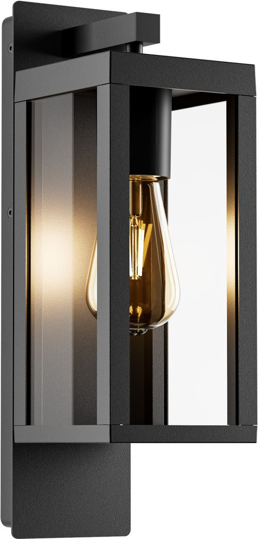 Druckguss Aluminium / graphit, Diffusor aus Glas, IP44, Exkl. Leuchtmittel, Bestückung: 1 x E27 max. 60 W, L x B x H: 16,8 x 12,0 x 38,0 cm