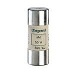 Legrand Zylindersicherung, Betriebsklasse aM (träge), Bemessungsstrom 50 A, Größe 22 x 58 mm, Bemessungsspannung 500 VAC, Ausschaltvermögen 100 kA, mit Schlagbolzen, Betriebsklasse aM - Teilbereichs-Schutz von Motorstromkreisen, zur Anwendung wenn nur ein Kurzschlussschutz erforderlich ist.